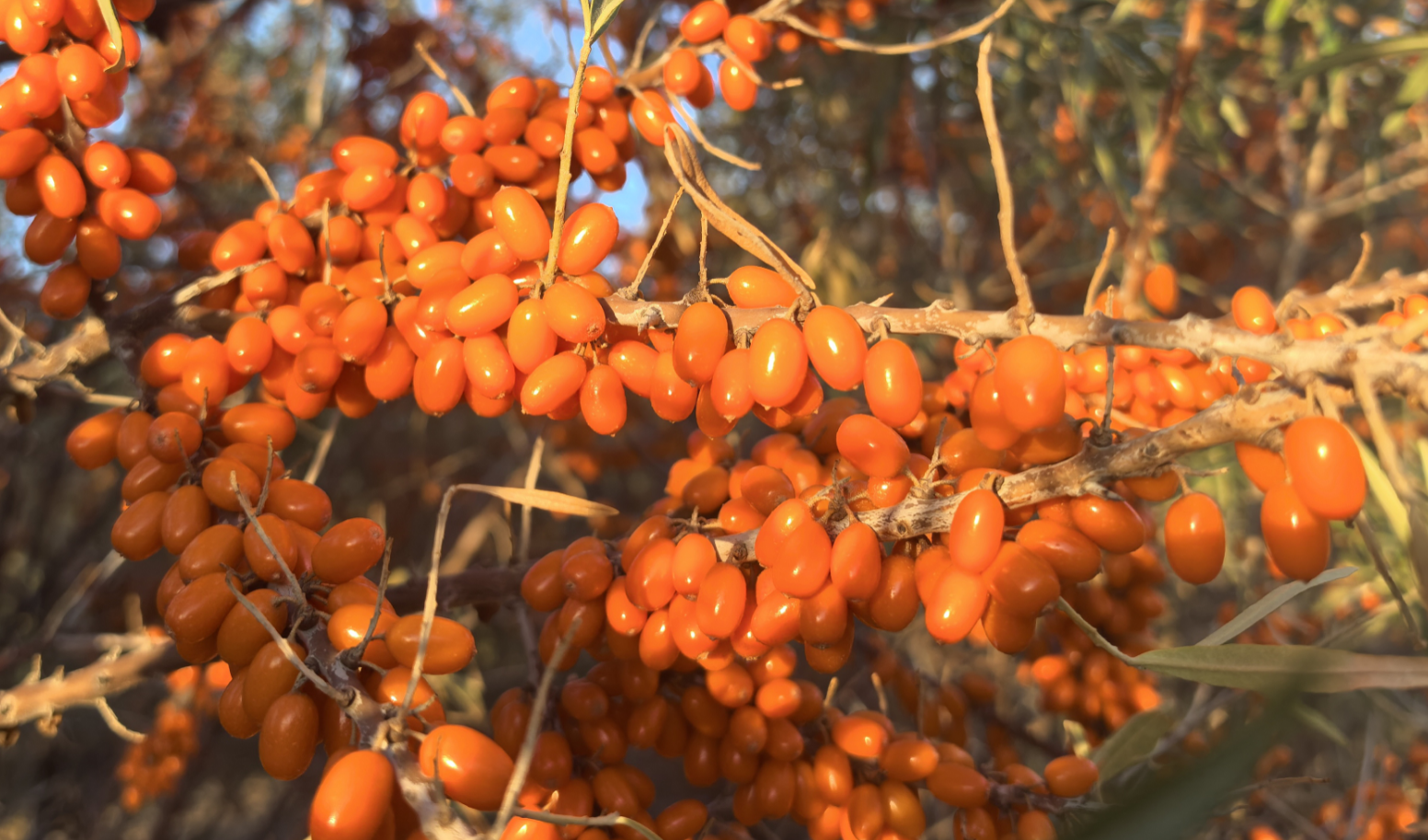 沙棘的根、茎、叶、花、果、籽,均可入药,沙棘果实营养丰富,富含多种维生素、脂肪酸、微量元素、亚油素、沙棘黄酮、超氧化物等活性物质和人体所需的各种氨基酸。沙棘油中含有428种对人体有益的活性物质,其中有46种生物活性物质,含有大量的维生素E、维生素A、黄酮等;沙棘是维生素C含量最高之一的水果,高达1400mg/100g;同时也是获取w-7的稀有植物源。