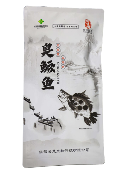 每年三四月桃花盛开之时,鳜鱼最为肥美,吴楚甄选黄山臭鳜鱼采用天然水域养殖的鳜花鱼为原料,传承古法腌制技艺,手工净膛,健康低盐,秘制调味,石块压实,木桶静置,充分发酵。肉质紧实鲜嫩、呈蒜瓣状,咸香醇厚,香鲜透骨,肉质弹滑,入口满齿留香。